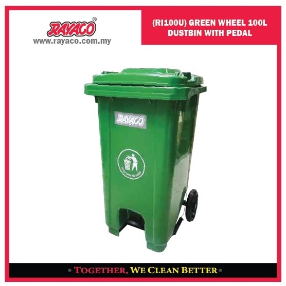 / (RI100U) TEMPAT SAMPAH RODA DENGAN PEDAL 100L HIJAU